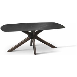 E-STYLO Tavolo Fisso 180x90cm in Ceramica Marmo Nero e Base in Massello di Noce