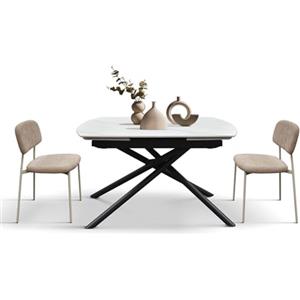 KONTE.DESIGN Tavolo BONIFACIO Allungabile in Ceramica Bianco Statuario con Base in Metallo Nero - 120x88 cm a 180x88 cm