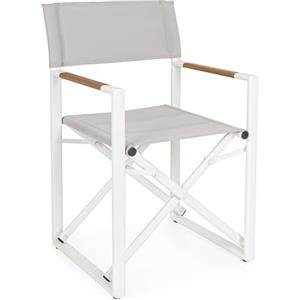 KONTE.DESIGN Set di 2 Sedie Regista LAGUN in Alluminio Bianco e Textilene Grigio Chiaro, Pieghevoli per Esterni