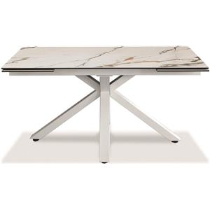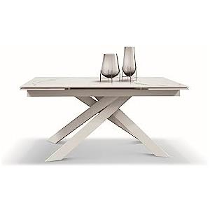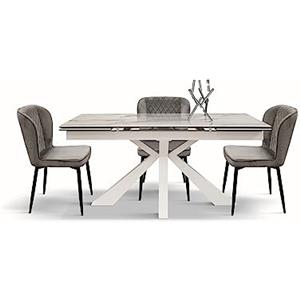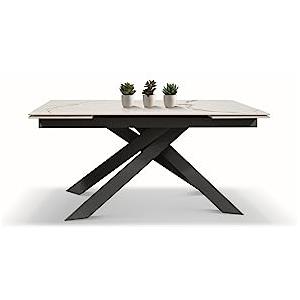 KONTE.DESIGN Tavolo BEVERLY HILLS Allungabile in Vetroceramica Effetto Marmo Luxury Pandora e Metallo Verniciato Bianco - 160x90 cm (240x90 cm)