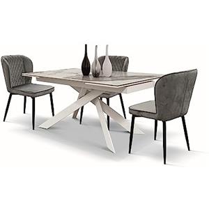 KONTE.DESIGN Tavolo BEVERLY HILLS Allungabile in Vetroceramica Effetto Marmo Statuario e Metallo Antracite - 160x90 cm fino a 240x90 cm in Tavoli e Sedie