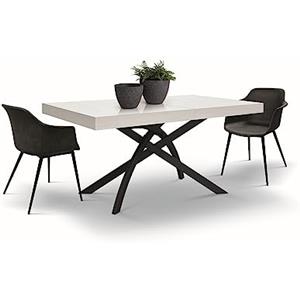 KONTE.DESIGN Tavolo GORGONA Allungabile in Legno Bianco Frassinato e Metallo Antracite - 140x90 cm (220x90 cm)