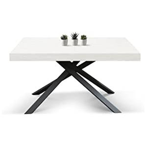 KONTE.DESIGN Tavolo FORTE DEI MARMI Allungabile in Legno Grigio Cemento con Gambe in Metallo Bianco - 95x90 cm (chiuso) / 145x90 cm (aperto)