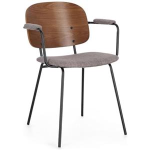 KONTE.DESIGN Set di 2 sedie SIENNA in tessuto grigio e legno marrone con gambe in acciaio nero - Stile vintage