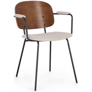 KONTE.DESIGN Set di 2 sedie SIENNA in tessuto beige e legno marrone con gambe in acciaio nero - Misure: 57x60x80 cm