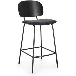 KONTE.DESIGN Set di 2 sgabelli SIENNA in tessuto grigio scuro e legno di pioppo nero - Design vintage per cucina e bar