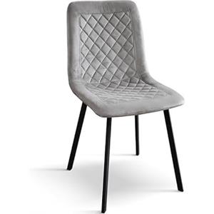 KONTE.DESIGN Set di 4 sedie AVALON in tessuto effetto velluto grigio con gambe in metallo nero - Design moderno e elegante