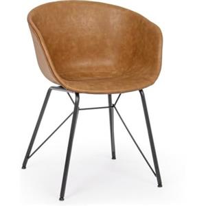 KONTE.DESIGN Set di 2 Poltroncine WARHOL in Similpelle Cuoio con Gambe in Acciaio Nero e Braccioli