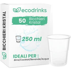 Kristal - 50 Bicchieri in Plastica Semirigida da 300 ml, Eleganti e Resistenti per Eventi e Feste in Tavola e Cucina