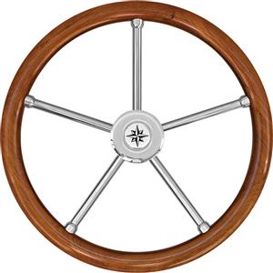 Savoretti Ruota Timone in Teak Ø 400 mm con Razze in Acciaio Inossidabile