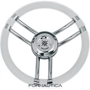 SAVORETTI Volante Barca Gommone 3 Razze Inox e Poliuretano Bianco Ø 35 cm