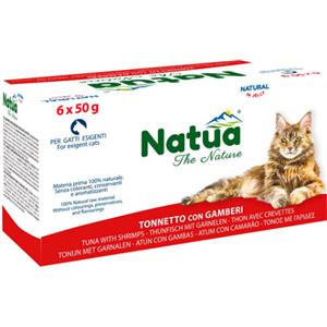 Natua Alimento Umido per Gatti al Tonnetto e Gamberi in Jelly - Multipack 6x50g, 100% Naturale e Senza Conservanti