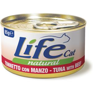 LifeCat Alimento Umido Naturale per Gatti - Tonnetto con Manzo, Filetti Teneri in Confezione Multipack da 6 x 85 g