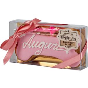 DoggyeBag Birthday Bone Rosa - Biscotto per Cani 85g con Glassa allo Yogurt e Candelina Inclusa