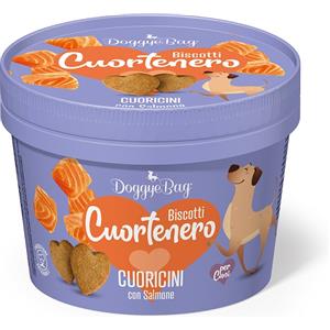 DoggyeBag Cuortenero Biscotti Cuoricini al Salmone 150g - Snack Artigianali per Cani, Low Grain e Cotti al Forno
