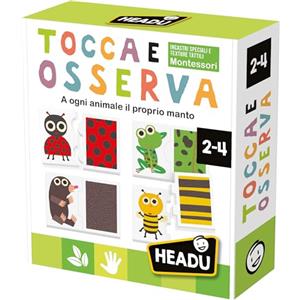 Headu Tocca & Osserva - Gioco Educativo Montessori per Bambini 2-4 Anni con Tessere Smerigliate e Tavola Illustrata