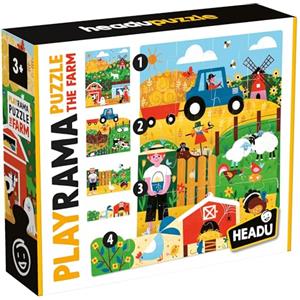 HEADU Playrama Puzzle The Farm - Puzzle Educativo Tridimensionale per Bambini dai 3 anni con Effetto Magico