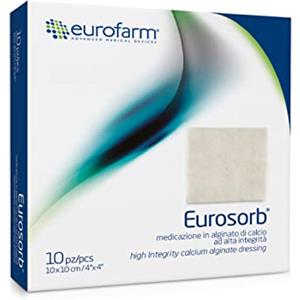 EUROFARM EUROSORB Medicazione in Alginato di Calcio 10x10 cm - Confezione da 10 Pezzi, Alta Assorbenza