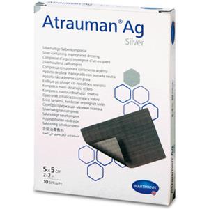 PAUL HARTMANN Atrauman Medicazione con Argento 5x5cm - 10 Pezzi, Antibatterica e Sterile