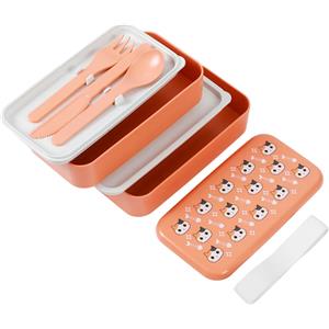 I-TOTAL® Lunch Box Bento Arancione con Gatto - Doppio Scomparto e Posate Integrate