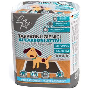 Leopet Tappetini Igienici ai Carboni Attivi 60x60 cm - 50 Pezzi Super Assorbenti con Strisce Adesive