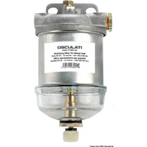 Osculati Filtro Decantatore per Gasolio in Alluminio - Portata 65l/h, Grado di Filtraggio 12 Micron, Cartuccia Intercambiabile