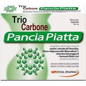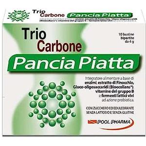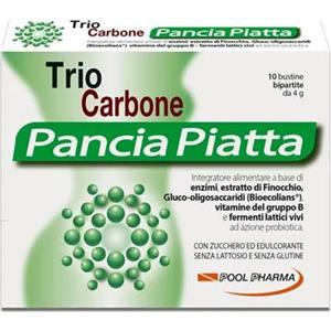 POOL PHARMA Srl Triocarbone Pancia Piatta 10 Bustine Bipartite - Integratore Alimentare con Enzimi, Carbone Vegetale, Finocchio, Fermenti Lattici e Vitamine B