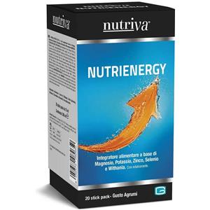 NUTRIVA Nutrienergy - Integratore Alimentare per Stanchezza e Stress, 20 Stick Pack con Magnesio, Potassio, Zinco, Selenio e Withania