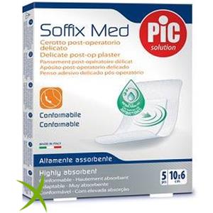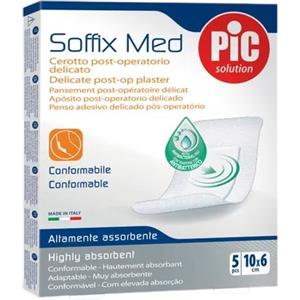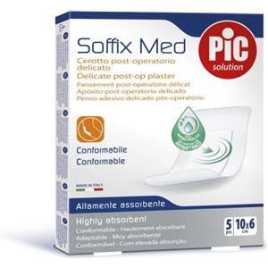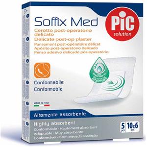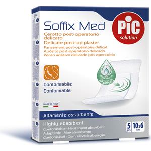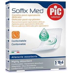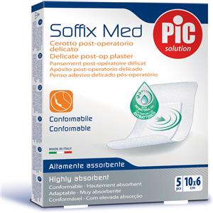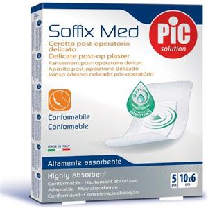 Pic Soffix Med - Cerotto post-operatorio delicato e antibatterico, 5 pezzi da 10 x 6 cm
