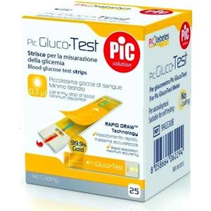 PIC Strisce Reattive Gluco-Test per Misurazione Glicemia - 25 Pezzi, Minimo Fastidio e Assorbimento Rapido