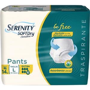 SERENITY SoftDry Sensitive Be Free Pants Extra - Mutandina Assorbente Taglia S con Controllo Odori e Dermoprotezione all'Aloe - 14 Pezzi