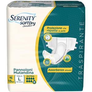 Serenity Soft Dry Sensitive Extra Pannolone Mutandina Taglia L - 15 Pezzi, Assorbenza Elevata e Comfort Anatomico