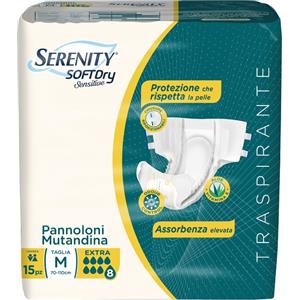 SERENITY Softdry Sensitive Pannolone Mutandina Extra Taglia M - 15 Pezzi, Elevata Assorbenza e Traspirabilità
