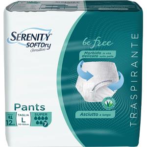 Serenity Soft Dry Sensitive Pants Taglia L - 12 Pezzi, Traspiranti e Comodi per Incontinenza Moderata