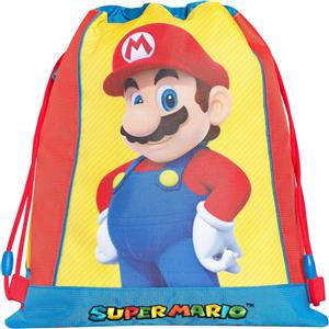 Franco Cosimo Panini - Sacca Coulisse Ufficiale Super Mario, 34x42 cm, Retro in Rete, Tasca con Zip, Ideale per Palestra e Scuola