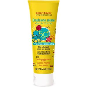 Farmaderbe Desert Flower - Emulsione Solare Viso e Corpo SPF50 per Bimbi, 125ml con Filtri Fotostabili e Ingredienti Idratanti