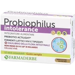 FARMADERBE PROBIOPHILUS INTOLLERANCE - Integratore Alimentare con Fermenti Lattici e Frutto-Oligosaccaridi, 12 Stick Pack in Integratori e Vitamine