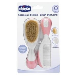 Chicco Spazzola e Pettine Rosa - Set con Setole Naturali e Punte Arrotondate, Ideale per Neonati 0 Mesi