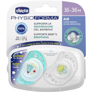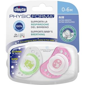 Chicco Succhietto Physio Air Luminoso in Silicone 0-6 Mesi - 2 Pezzi con Massima Areazione e Tettina Attiva