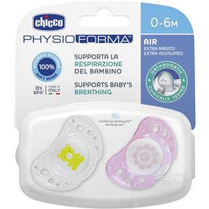 Chicco Succhietto Physio Air in Silicone 0-6 Mesi, 2 Pezzi - Tettina Attiva e Massima Areazione
