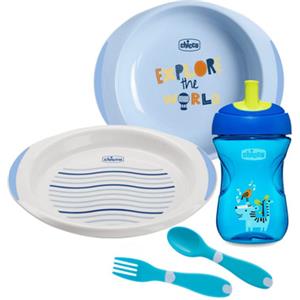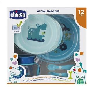 Chicco All You Need Set Pappa 12M+ Colore Azzurro, 1 Cup + 2 Piatti + 2 Posate