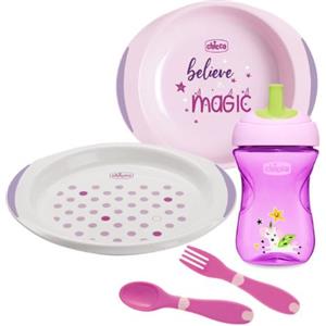 Chicco All You Need Set Pappa 12M+ Colore Rosa, 1 Cup + 2 Piatti + 2 Posate