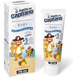 Pasta del Capitano Dentifricio Baby Gel Tuttifrutti 75 ml - Delicato, con Fluoro e Calcio, per Bambini 3 Anni