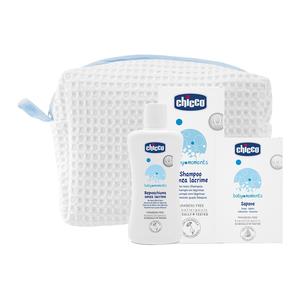 Chicco Baby Moments Set Igiene Neonato - Beauty Case con Zip, Bagnoschiuma Senza Lacrime, Shampoo e Saponetta per Pelli Sensibili, 0 Mesi in Cura del bambino