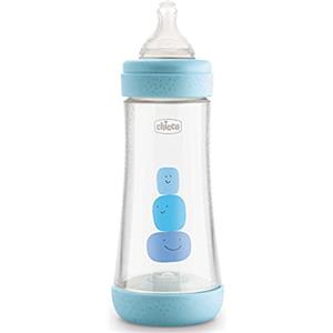 Chicco Perfect 5 Biberon Azzurro 300 ml Flusso Veloce Silicone - Anti-colica per Neonati 4M