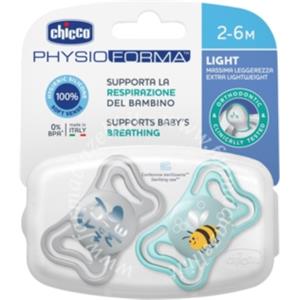Chicco PhysioForma Light Succhietto in Silicone Azzurro 2 Pezzi per Bambini 2-6 Mesi - Extra Leggero e Ergonomico
