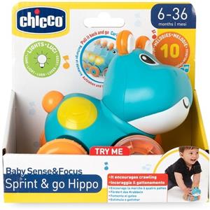 Chicco Hippo Sprint&Go - Gioco Trainabile Elettronico con Melodie, Suoni e Luci, Stimola il Gattonamento, Ruote in Gomma, 6-36 Mesi