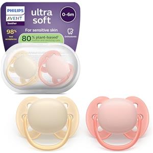 Philips Avent Succhietti Ultra Soft - Design ortodontico, per neonati 0-6 mesi, scudo flessibile in silicone morbido, confezione da 2