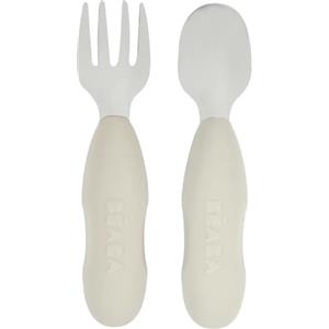 Béaba Set di 2 Posate in Acciaio Inox e Silicone Grigio per Bambini - Ergonomiche e Sicure