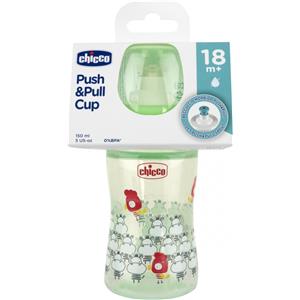 Chicco Tazza Push&Pull Verde 150ml - Antigoccia, Beccuccio in Silicone per Bambini 18m